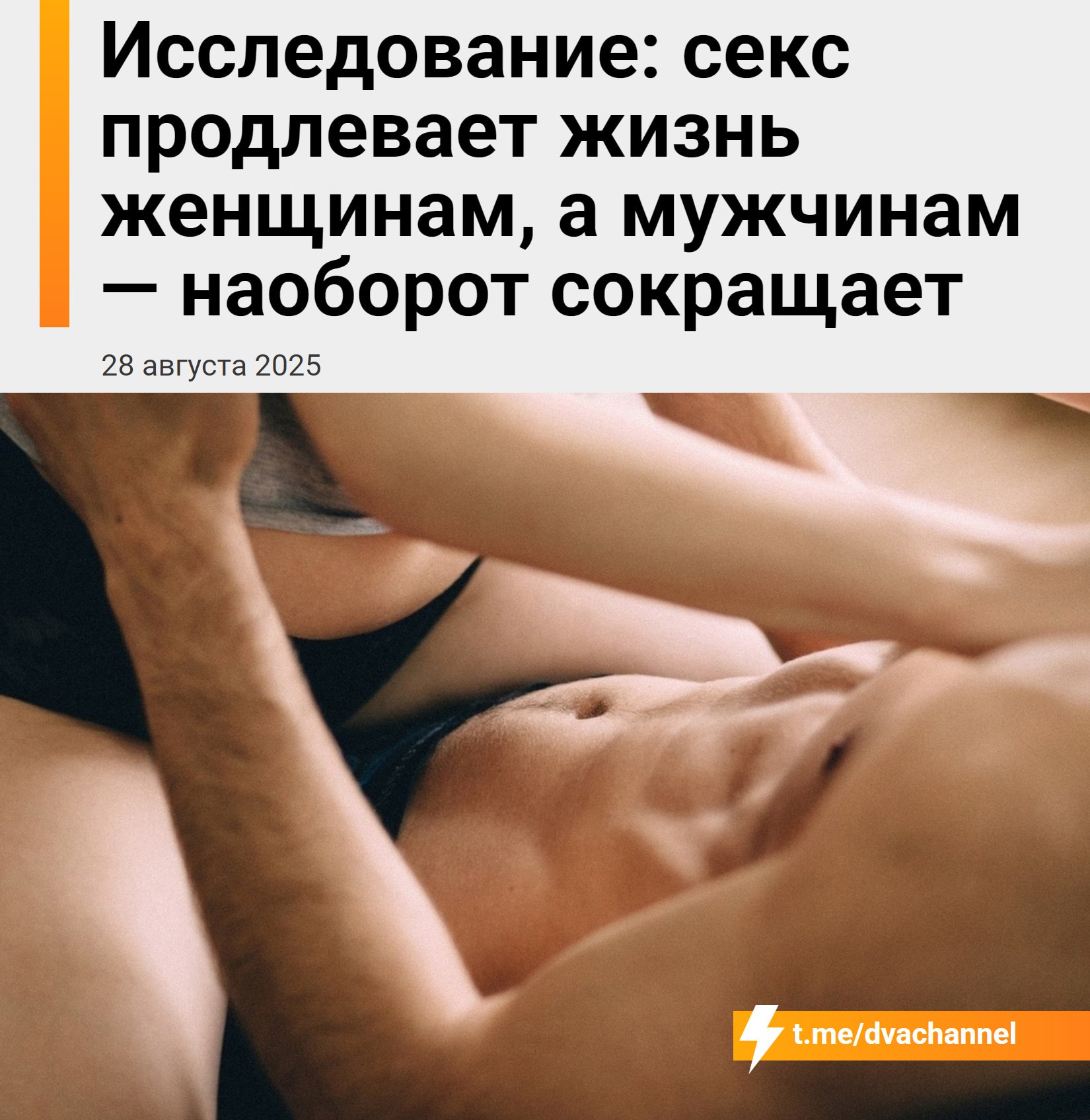 ⚡️Секс продлевает жизнь женщинам, а мужчинам сокращает — исследование