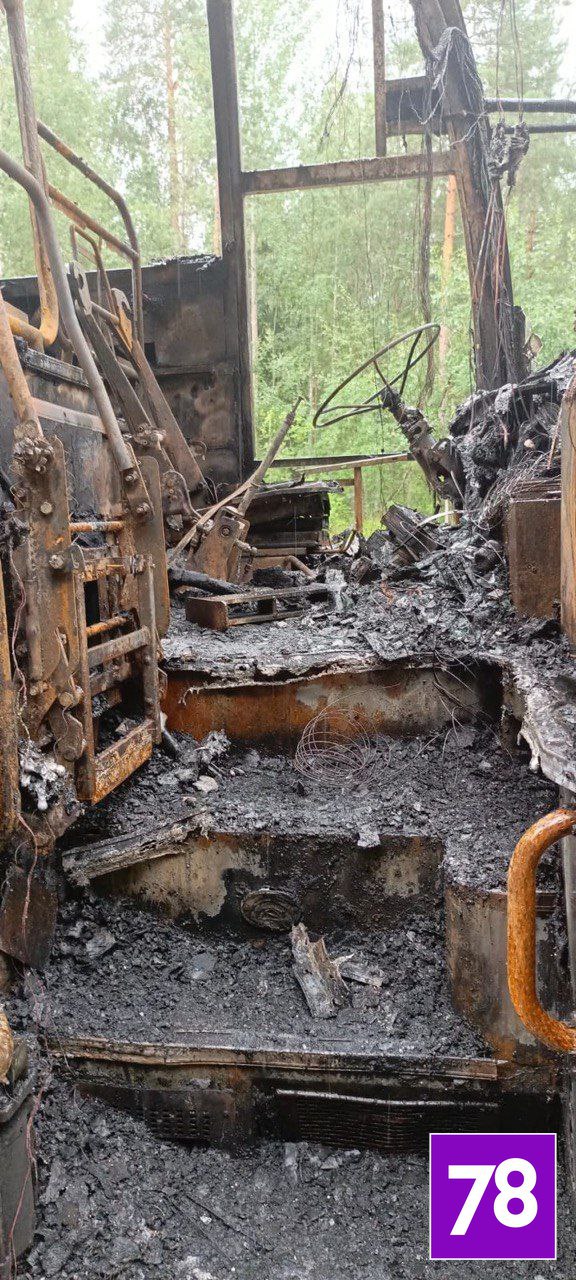 Рейсовый автобус полностью выгорел изнутри на трассе около посёлка Шумилово