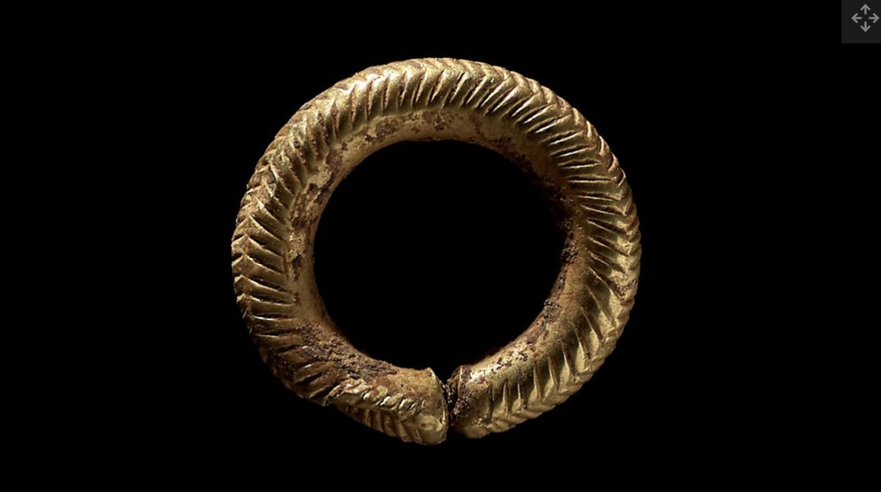 Блестящее золотое кольцо для волос было частью захоронения бронзового века, обнаруженного на обочине дороги в Уэльсе. На маленьком золотом кольце изображен замысловатый узор. В ходе раскопок археологи также нашли деревянный гребень, который считается самым древним из когда-либо найденных в Великобритании. Оба предмета были захоронены рядом с кремированными останками человека, имевшего высокий социальный статус, возрастом 3 000 лет.