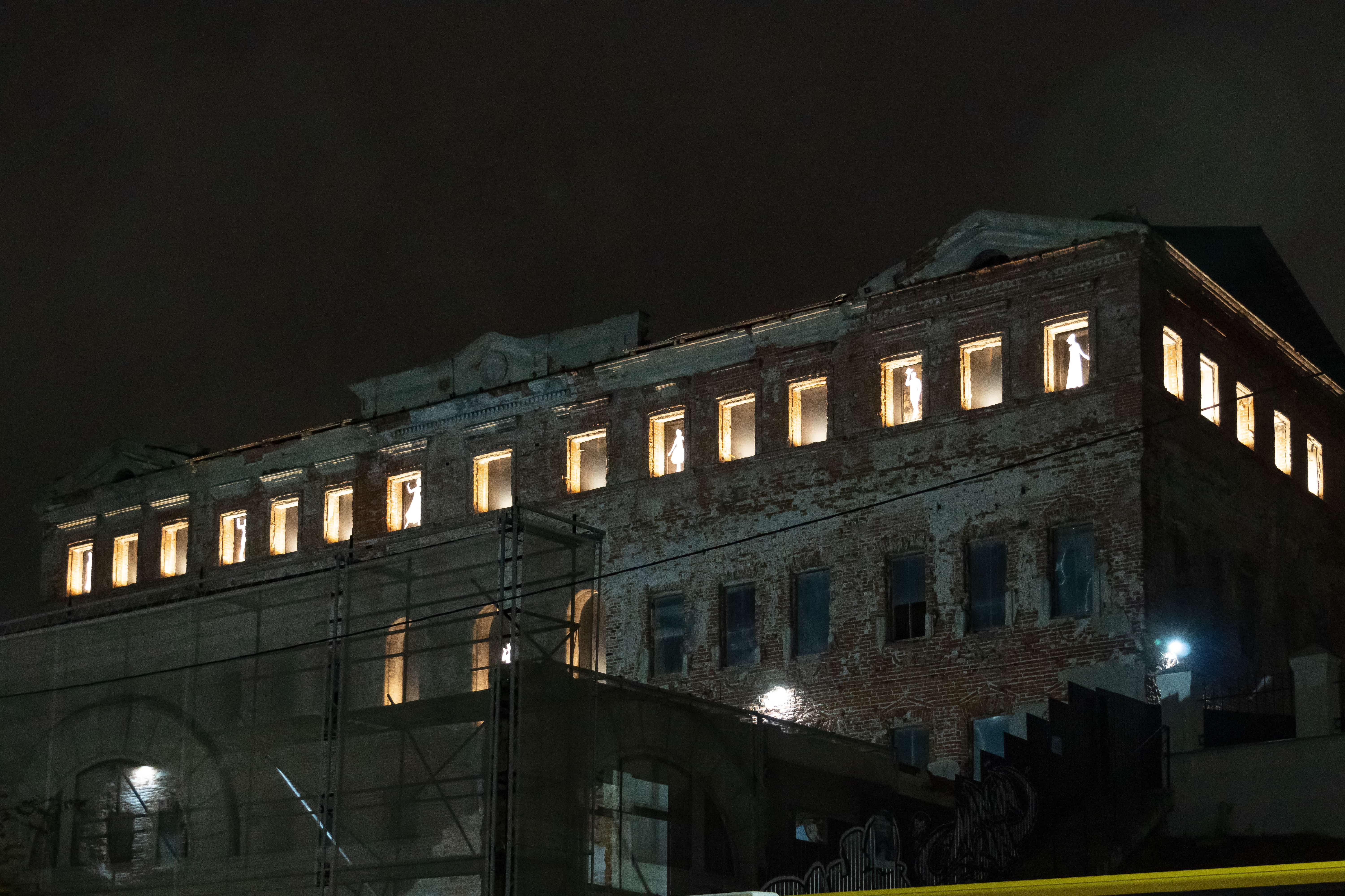 Наша обычная вечерняя прогулка стала путешествием во времени и перенесла нас в ХIХ век. Мы стали свидетелями удивительной световой инсталляции в окнах исторического квартала на ул. Профосоюзная/Рахматуллина.