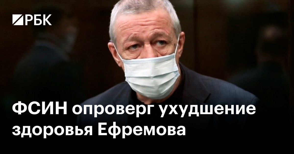 Во ФСИН уточнили, что состояние здоровья Ефремова удовлетворительное, «без отрицательной динамики, он в полном объеме получает необходимую медицинскую помощь и находится под постоянным наблюдением врачей».