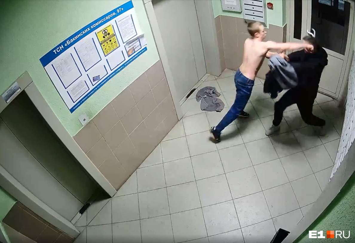 На Уралмаше полуголый парень прокатился на самокате, а потом устроил драку в подъезде: безумства попали на видео