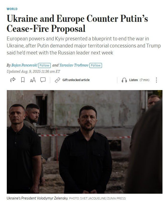 В плане говорится, что обмен территориями может быть "только на взаимной основе". Также он предусматривает, что любые территориальные уступки со стороны Киева должны быть защищены гарантиями безопасности, включая потенциальное членство в НАТО.