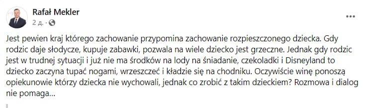Организатор польской блокады Рафал Меклер назвал Украину «избалованным ребёнком»