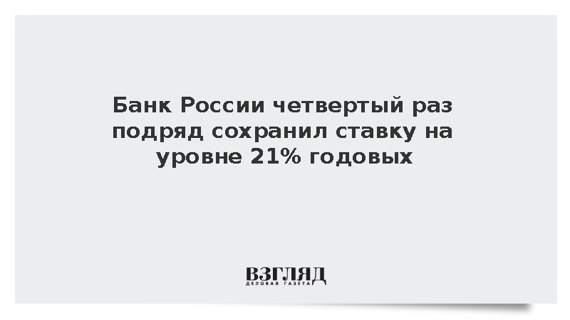 Совет директоров Банка России оставил ключевую ставку на уровне 21% годовых уже четвертый раз подряд.