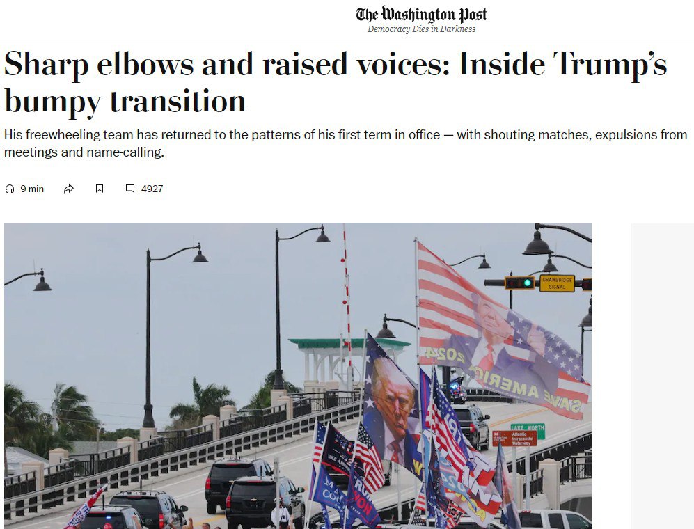 Такая обстановка царит в команде избранного президента США Дональда Трампа, сообщает Washington Post со ссылкой на источники.