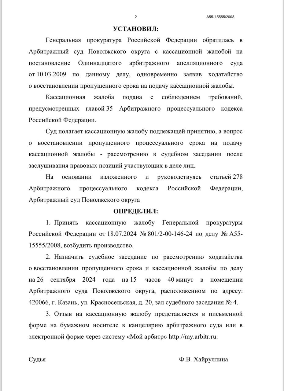 📑Напомню, что в июле надзорное ведомство обратилось в Поволжский арбитраж, требуя отменить откровенно беспредельное решение, вынесенное 11-м апелляционным арбитражным судом (дислоцирован в Самаре) еще 15 лет назад.