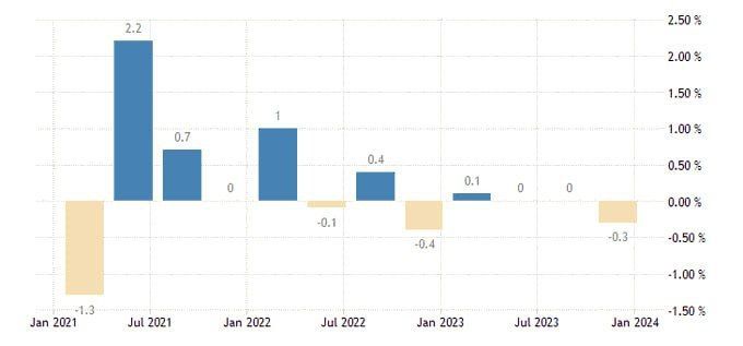 Экономика Германии сократилась на 0,3% в последнем квартале 2023 года, что совпало с ожиданиями рынка и ознаменовало спад после двух последовательных периодов стагнации.