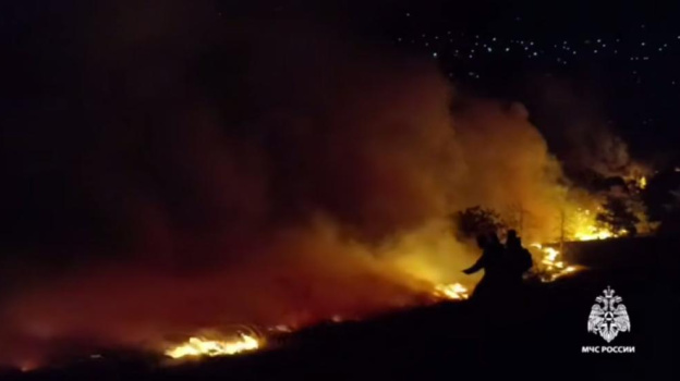 Ночью в Орджоникидзе площадь пожара пройденная огнем увеличилась до 80 га.