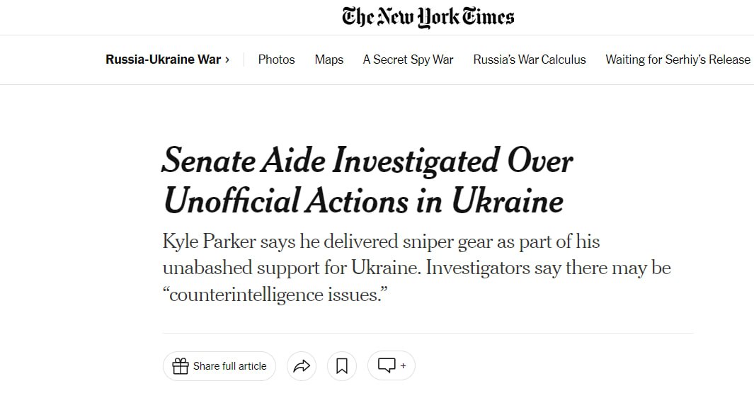 Сенатора обвиняют в неофициальной передаче украинским солдатам снайперского снаряжения на общую сумму $30 тыс. Издание сообщает, что передача вооружений "может сделать Паркера незарегистрированным иностранным агентом".