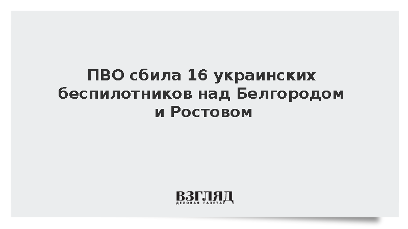 Средства ПВО России перехватили и уничтожили 16 украинских беспилотников над Белгородской и Ростовской областями за полтора часа.