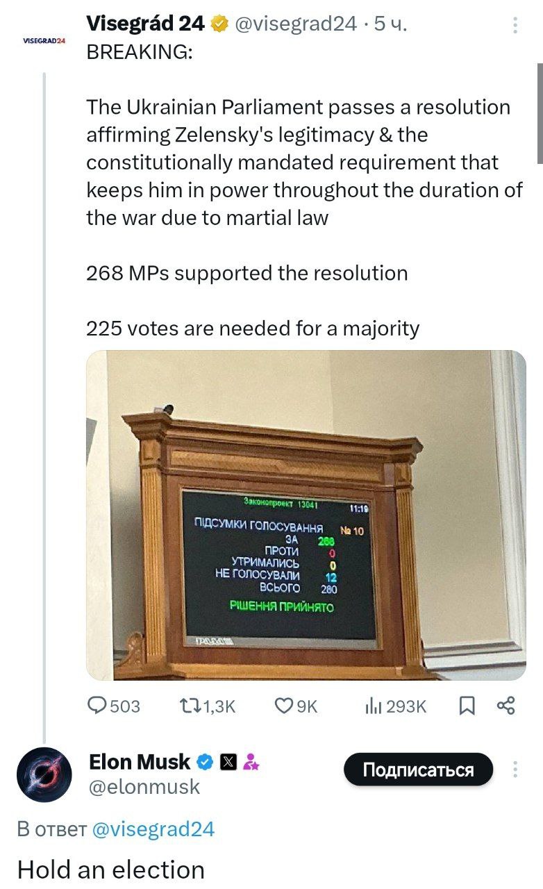 πΈ ΠΠ»ΠΎΠ½ ΠΠ°ΡΠΊ ΠΏΡΠΎΠΊΠΎΠΌΠΌΠ΅Π½ΡΠΈΡΠΎΠ²Π°Π» ΠΏΡΠΈΠ½ΡΡΠΈΠ΅ ΠΠ΅ΡΡ ΠΎΠ²Π½ΠΎΠΉ Π Π°Π΄ΠΎΠΉ ΠΏΠΎΡΡΠ°Π½ΠΎΠ²Π»Π΅Π½ΠΈΡ, ΠΏΡΠΎΠ΄Π»Π΅Π²Π°ΡΡΠ΅Π³ΠΎ ΠΏΠΎΠ»Π½ΠΎΠΌΠΎΡΠΈΡ ΠΠ΅Π»Π΅Π½ΡΠΊΠΎΠ³ΠΎ*: