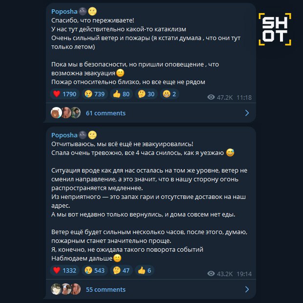 Певец Алексей Воробьёв экстренно эвакуировался из своего дома в Лос-Анджелесе, где бушуют пожары. Комик-иноагент Данила Поперечный и его жена готовятся к эвакуации