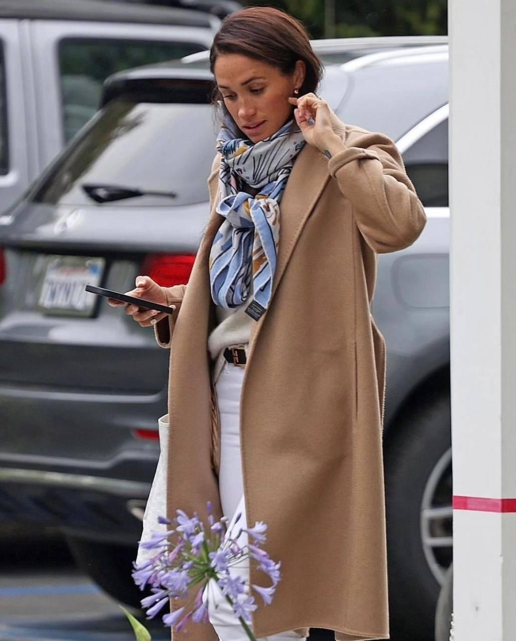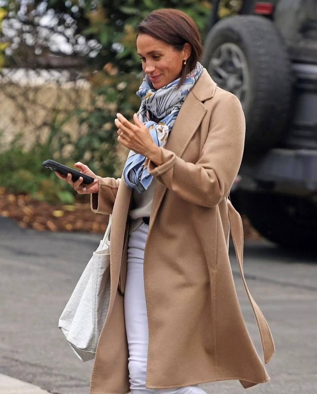 Два дня назад принц Гарри уехал в Японию, а затем в Сингапур в рамках поддержки собственного благотворительный фонд, который помогает детям африканского континента больным СПИДом. Зарабатываются средства для фонда различными способами, и один из них — турнир по игре в поло. А принц отлично в него играет. Как видим, Гарри не оставил все свои монаршие обязанности, и продолжает заниматься фондами. А пока супруг занимается благими делами, его жена осталась с детьми дома, в Санта-Барбаре. Правда, последний выход Меган всех удивил — несмотря на теплю погоду, Маркл вышла из дома в пальто. На супруге принца было укороченное пальто Max Mara, белые узкие джинсы Flame, белая сумка Goyard, двухцветные туфли Chanel, и бежевый кашемировый свитер. Дополнили бежево-белый лук голубой кашемировая шаль Hermes и золотые серьги.