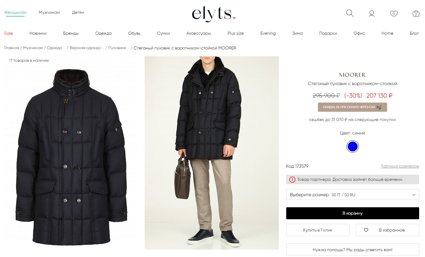 Второй — стеганый пуховик с воротником-стойкой от итальянского модного бренда MooRER. Удлиненная куртка стоит