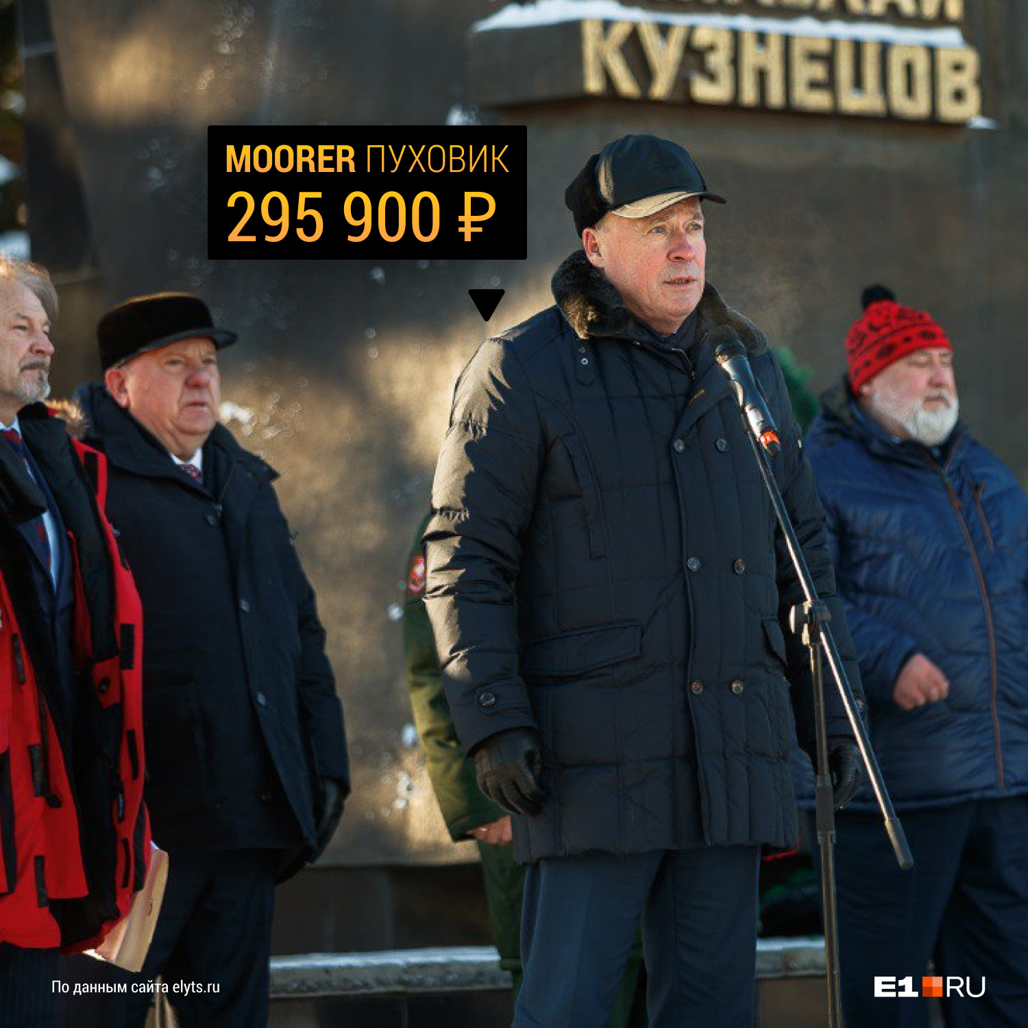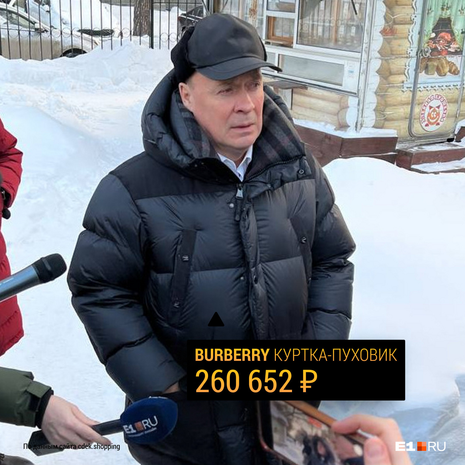 В гардеробе мэра минимум три крутых пуховика, каждый из которых стоит целое состояние. В морозы мэр предпочитает утепленный нейлоновый пуховик Burberry. При заказе из ОАЭ куртка известного английского бренда будет стоить 261 тысячу рублей. Наполнитель куртки — пух и перо, так что в уральские холода она должна хорошо согревать владельца. Именно в этом пуховике «сэра Орлова» заметили во время объезда заваленного снегом города.