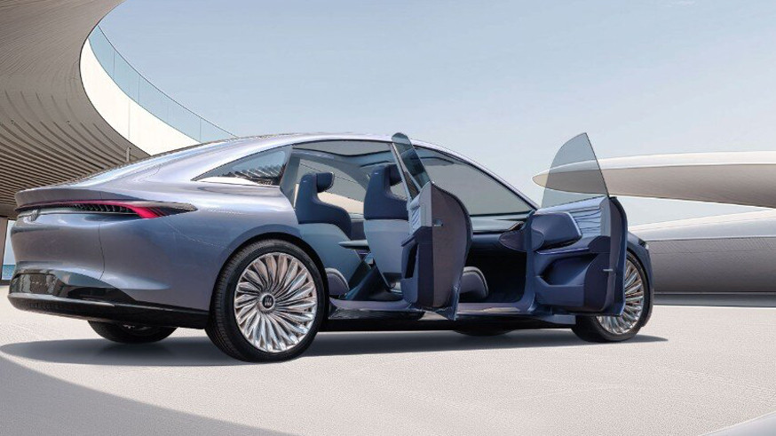 Ещё у предвестника головная оптика со светодиодной графикой в виде «расправленных крыльев», крошечные камеры вместо обычных наружных зеркал, большие колёсные диски, оформленные в виде турбины, и порт для зарядки, расположенный на левом переднем крыле. Вытянутые горизонтально фонари у седана соединены между собой: светящаяся полоса проходит через всю ширину крышки багажники, а выше находится интегрированный спойлер.