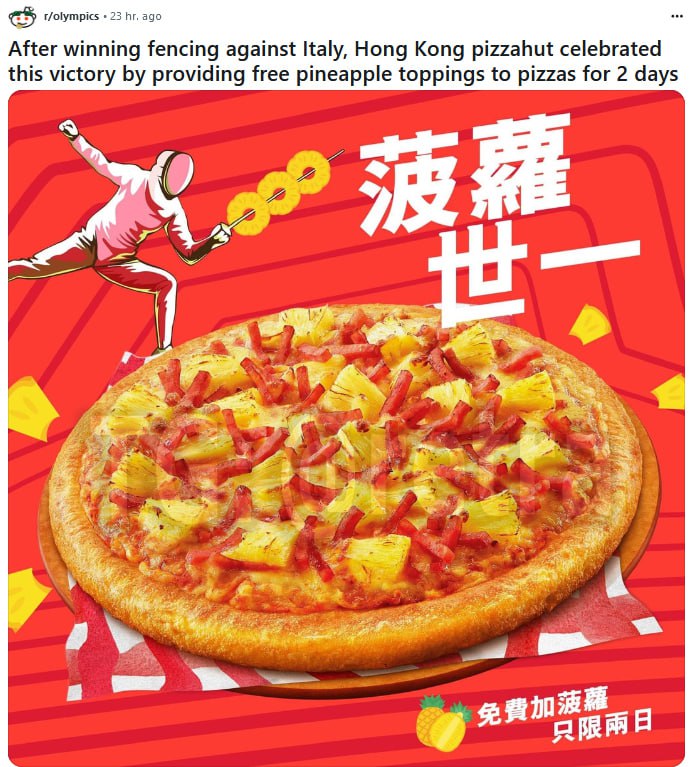 В ответ на это гонконгский Pizza Hut решил провести акцию, в которой предлагает всем посетителям добавить с свою пиццу ананасы абсолютно бесплатно.