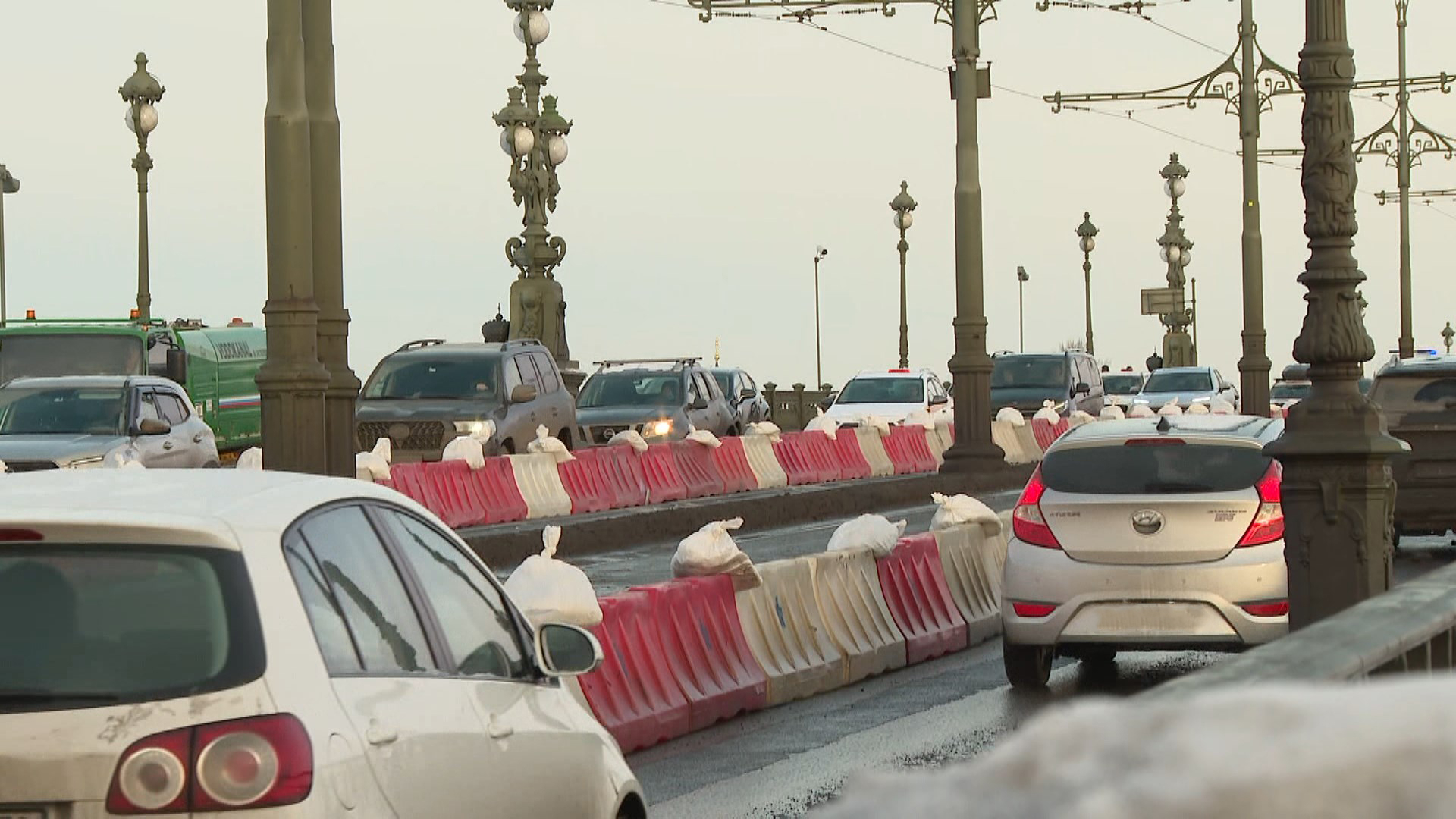 Так, специалисты уже приступили к замене трамвайных линий по направлению от Суворовской площади до Петровской набережной. По 10 июня закроют левый поворот с Миллионной улицы на Суворовскую площадь. На одной стороне моста сегодня открыты все полосы, по другой — только одна. Специалисты подчеркивают, что трафик по переправе всегда был интенсивным.