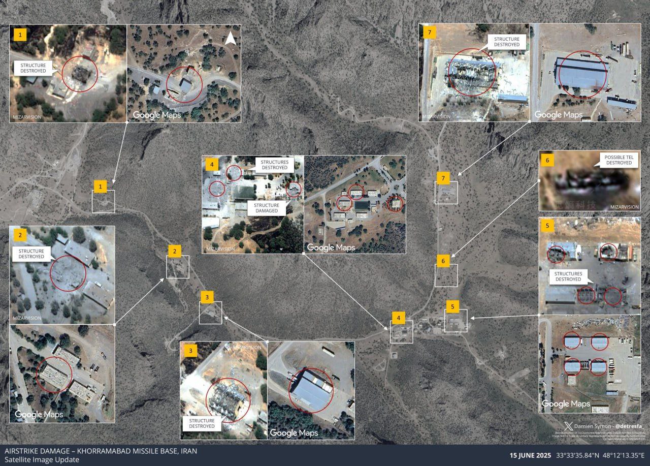 Colonelcassad7 месяцев назад ФОТО ФОТО Кадры с поражениями объектов в Иране после ударов Израиля:1. Военном объект в Хорремабаде 2. Ракетная базе КСИР в Керманшахе Информация на этой странице взята из источника: https://t.me/boris_rozhin/168920Темы и тегиКерманшахВоенные Действияобъект кадр поражение удар Военный Хорремабад КСИР ракетный