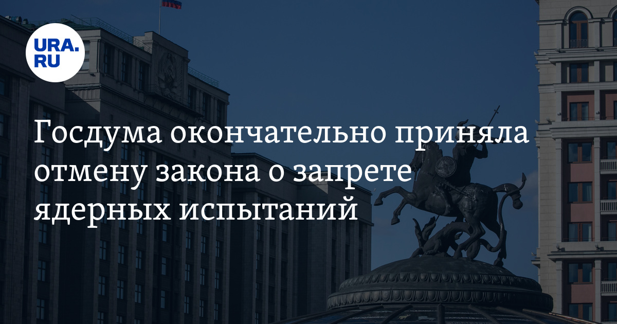 «Единогласно принят во втором и третьем чтениях закон об отзыве ратификации Договора о всеобъемлющем запрещении ядерных испытаний», — говорится на сайте Государственной Думы. Уточняется, что соавторами закона стали председатель Госдумы Вячеслав Гладков, главы российских фракций, а также почти все депутаты.