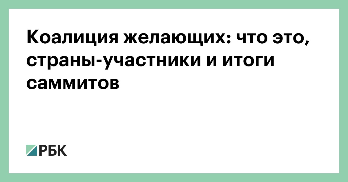 «Коалиция желающих» — это объединение из более 30 стран, главным образом европейских, которые допускают свое участие в возможной миротворческой миссии на Украине. Координирующую роль в нем играют Франция и Великобритания. Создание коалиции провозгласил в начале марта 2025 года британский премьер-министр Кир Стармер.