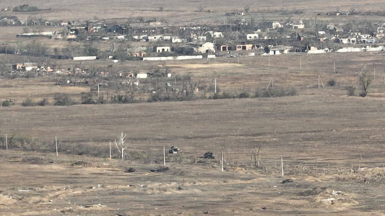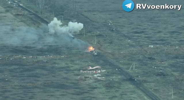 На трассе Т0408 южнее с. Работино в Запорожской области. Геопривязка РЛ: (47.431670, 35.828990) Бойцы 70-го МСП подбили БМП поставленную из США.