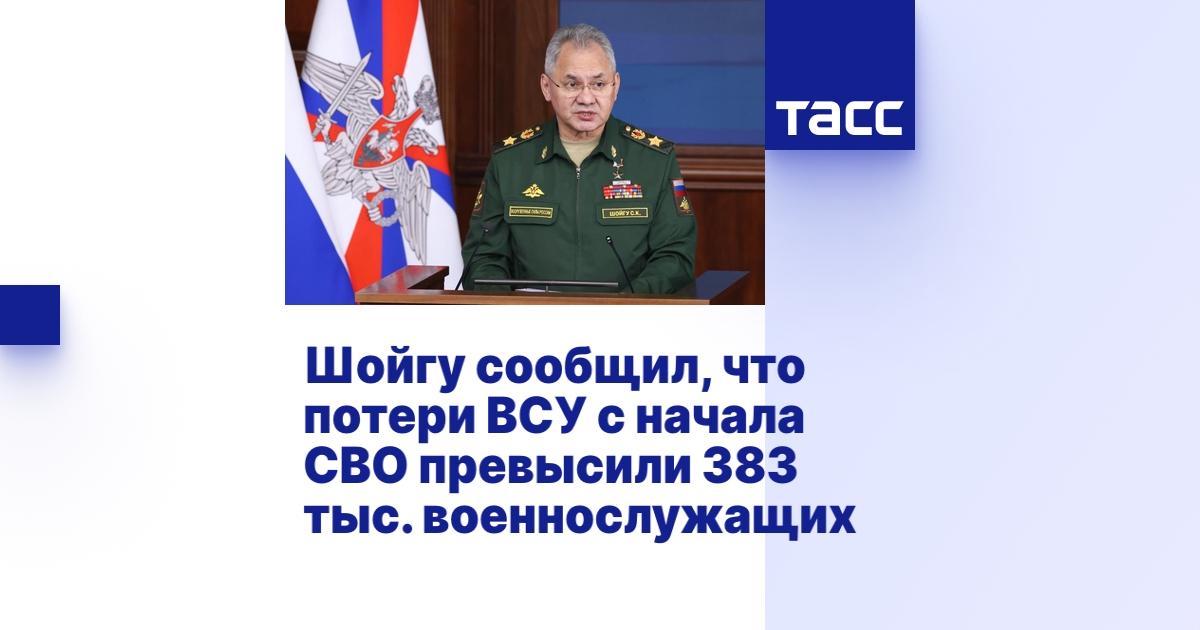 МОСКВА, 19 декабря. /ТАСС/. Потери Вооруженных сил Украины (ВСУ) с начала спецоперации превысили 383 тыс. военнослужащих убитыми и ранеными, 14 тыс. танков, боевых машин пехоты и бронетранспортеров, 553 самолета. Об этом сообщил министр обороны РФ Сергей Шойгу.