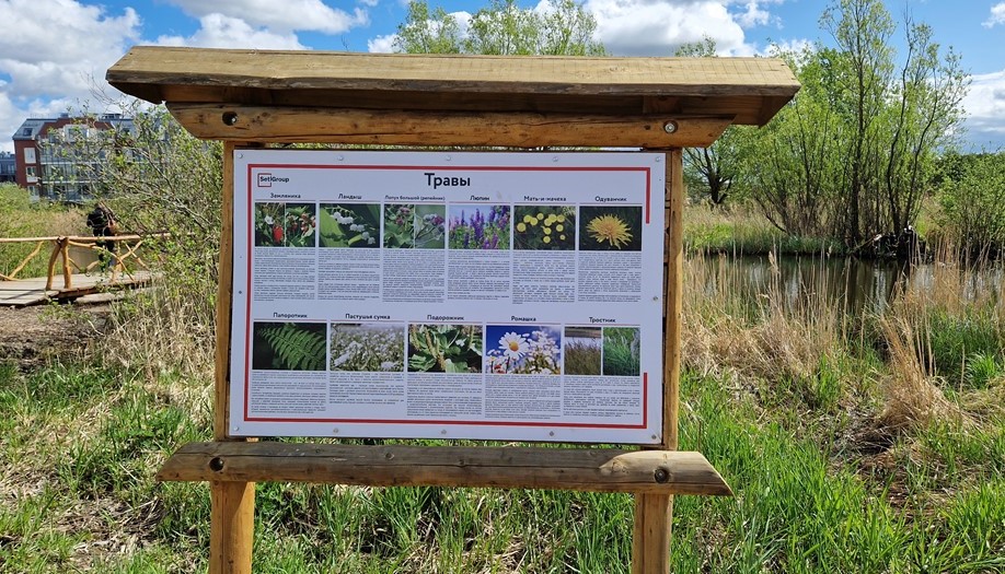 "Этим летом экотропа была обновлена. Там поставили автономные светильники, расчистили берег пруда, установили новые деревянные ограждения, появилась пешеходная дорожка с газоном на входе и выходе. Также было восстановлено покрытие дорожек из мульчи и проведена обработка деревьев от клещей", — рассказала главный инженер-эколог компании-застройщика Анна Лукьянова.