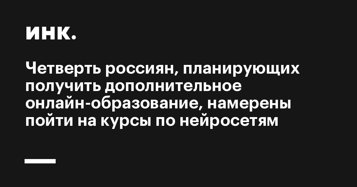 Согласно исследованию платформы GetCourse, посвященном готовности россиян инвестировать в онлайн-обучение в 2025 году, 24% участников опроса проявляют интерес к курсам по нейросетям. Особенно высока заинтересованность среди мужчин — более 40%. В исследовании приняли участие свыше 1,2 тыс. респондентов в возрасте от 18 до 50 лет из различных регионов страны. Подробности — в распоряжении редакции «Инк.».