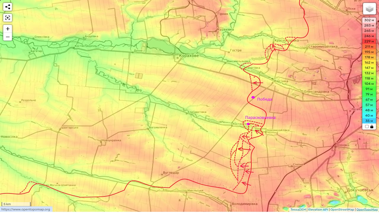 Здесь, без особых изменений. Продолжаются бои в Красногоровке и южнее, между Константиновкой и Угледаром. Везде есть небольшие тактические успехи нашей армии. Но для обороны ВСУ они пока не критичны.