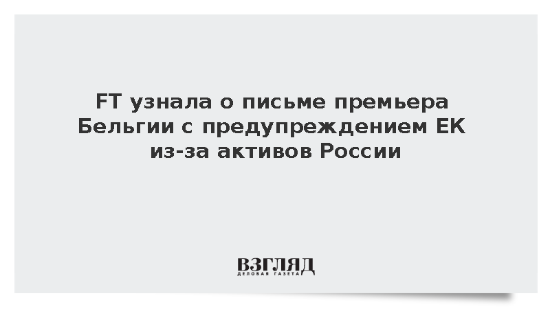 В письме председателю Европейской комиссии Барт Де Вевер выразил обеспокоенность последствиями быстрого принятия плана по использованию российских государственных активов для финансирования Украины, пишет Financial Times (FT).