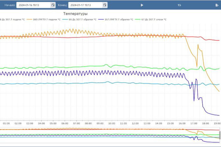 — Она может предоставить новые возможности для предотвращения аварий и оптимизации режимов работы инженерных систем и индивидуальных тепловых пунктов в частности, — отмечает Александр Дворцевой. — Сегодня зафиксировали резкое снижение параметров в 16:21 в двух муниципальных объектах в Ленинском и Кировском районах. В прошлый раз система зафиксировала аномальные значения параметров за три часа до аварии.