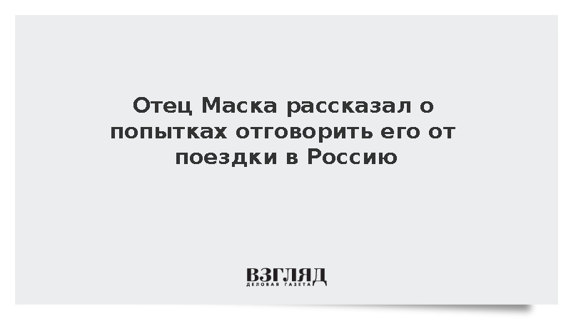 Ранее отец Маска Эррол посетил Москву, чтобы выступить на «Форуме будущего 2050», который пройдет 9 и 10 июня, до этого бизнесмен и торговец драгоценными камнями признался, что чистота и качество дорог Москвы поразили его.