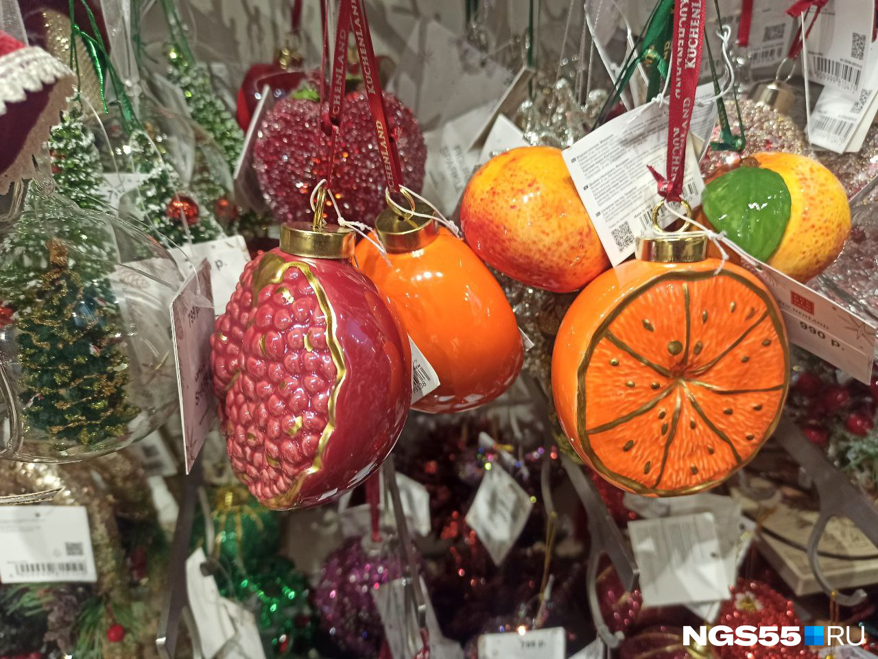 Начнем с простенького — игрушек от Kucheland Home. Как вам идея повесить кучу фруктов себе на елку? Стоят такие от 699 до 990 рублей