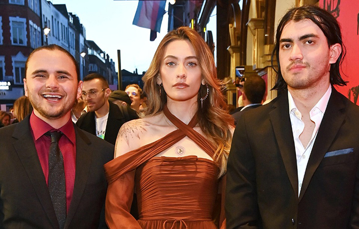 Принс Джексон, Пэрис Джексон и Биджи Джексон присутствуют на вечернем пресс-концерте «MJ: Мюзикл» в Театре принца Эдварда 27 марта 2024 года в Лондоне, Англия.