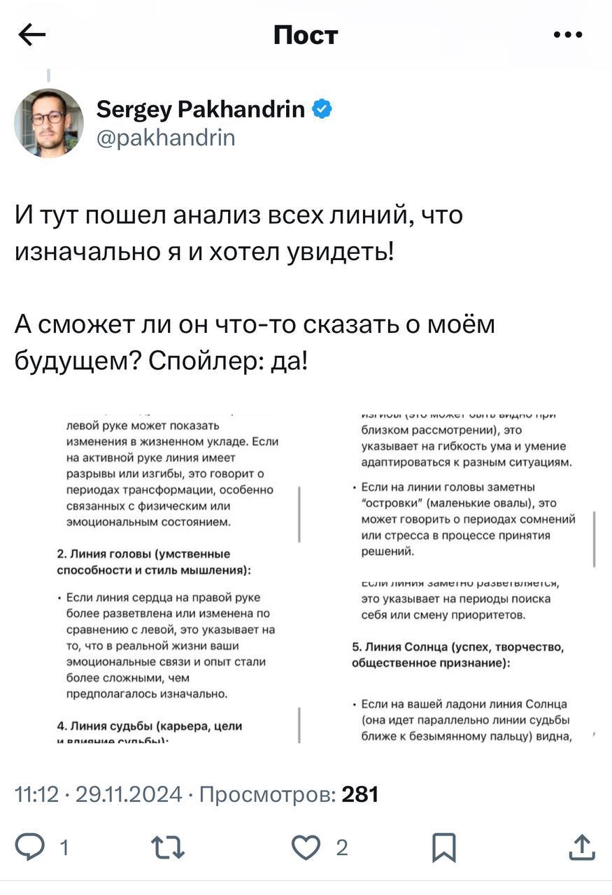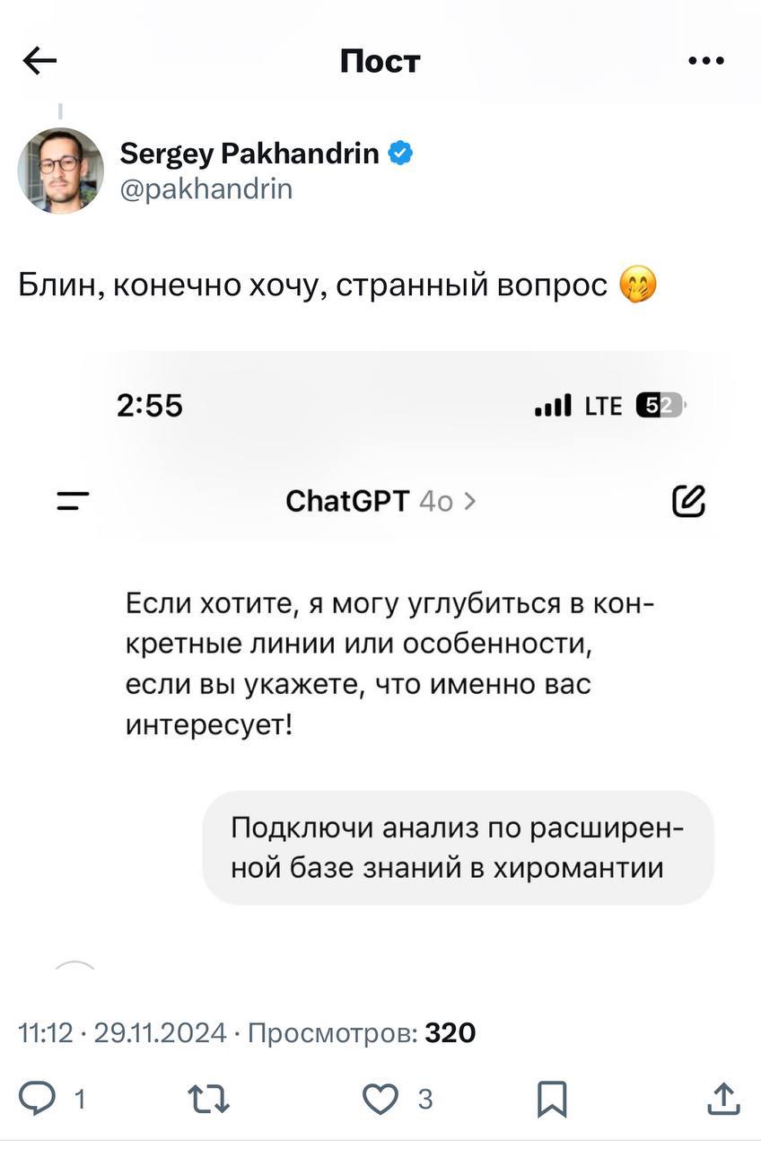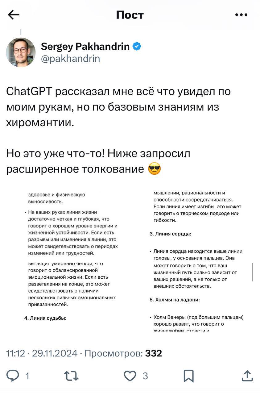Чел попросил ChatGPT… погадать ему по руке. Результат убил: ИИ выдал ПОДРОБНЫЙ анализ каждой линии на руке и даже предсказания на будущее.