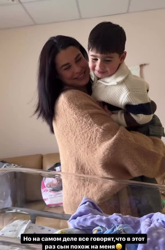 «На кого братик больше похож? На маму или папу?» — спросил мальчика Арай. «На папу», — ответил, улыбаясь ребенок. «Но на самом деле все говорят, что в этот раз сын похож на меня», — добавила Ирина.