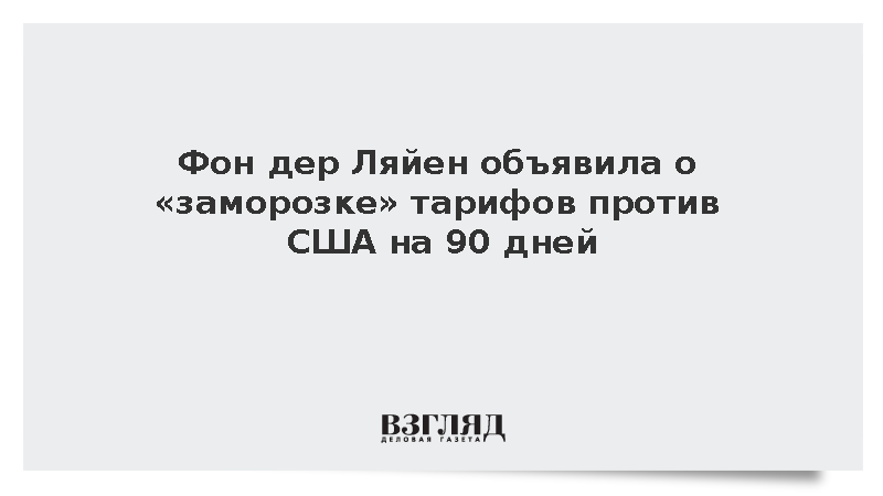 По ее словам, в ЕС продолжат работу над ответными мерами на пошлины США, но решили пока их «заморозить» на 90 дней. Фон дер Ляйен подчеркнула, что в случае неудачных переговоров, ЕС введет ответные тарифы.