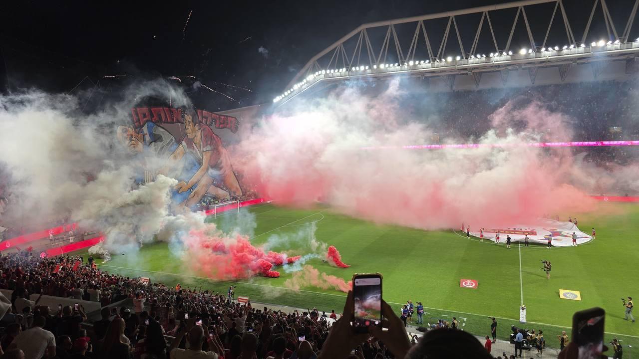 На стадионе в Тель-Авиве футбольное поле закидали дымовыми шашками и пиротехникой. Матч пришлось отменить.