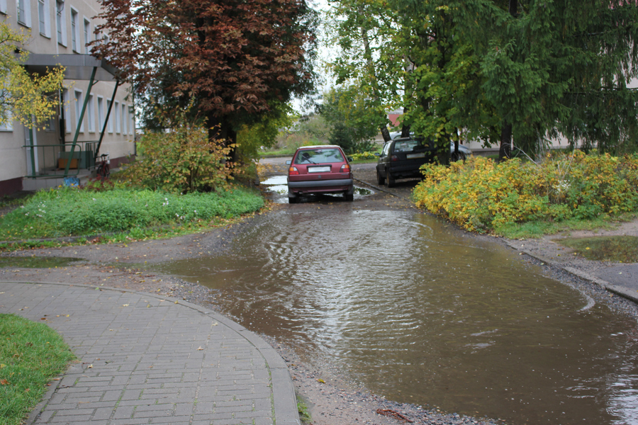 Возле дома №8 асфальт не обновили. Да и у дома номер №1, а также расположенного рядом общежития, как были ямы да канавы, в которых в дождливую погоду стоят лужи, так и остались.