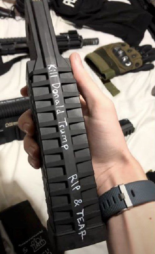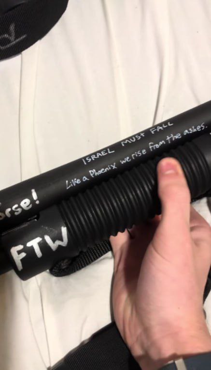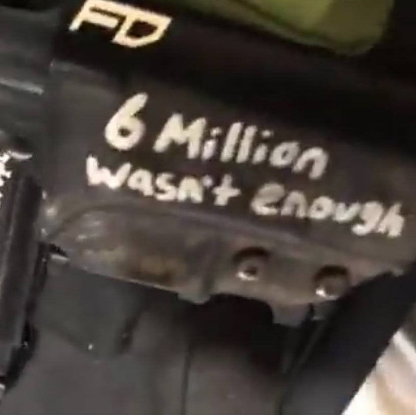 На магазинах и ствольных коробках он оставил десятки надписей: «6 миллионов недостаточно» (столько евреев погибло в результате Холокоста), «Израиль должен пасть», «убить Дональда Трампа» и других.