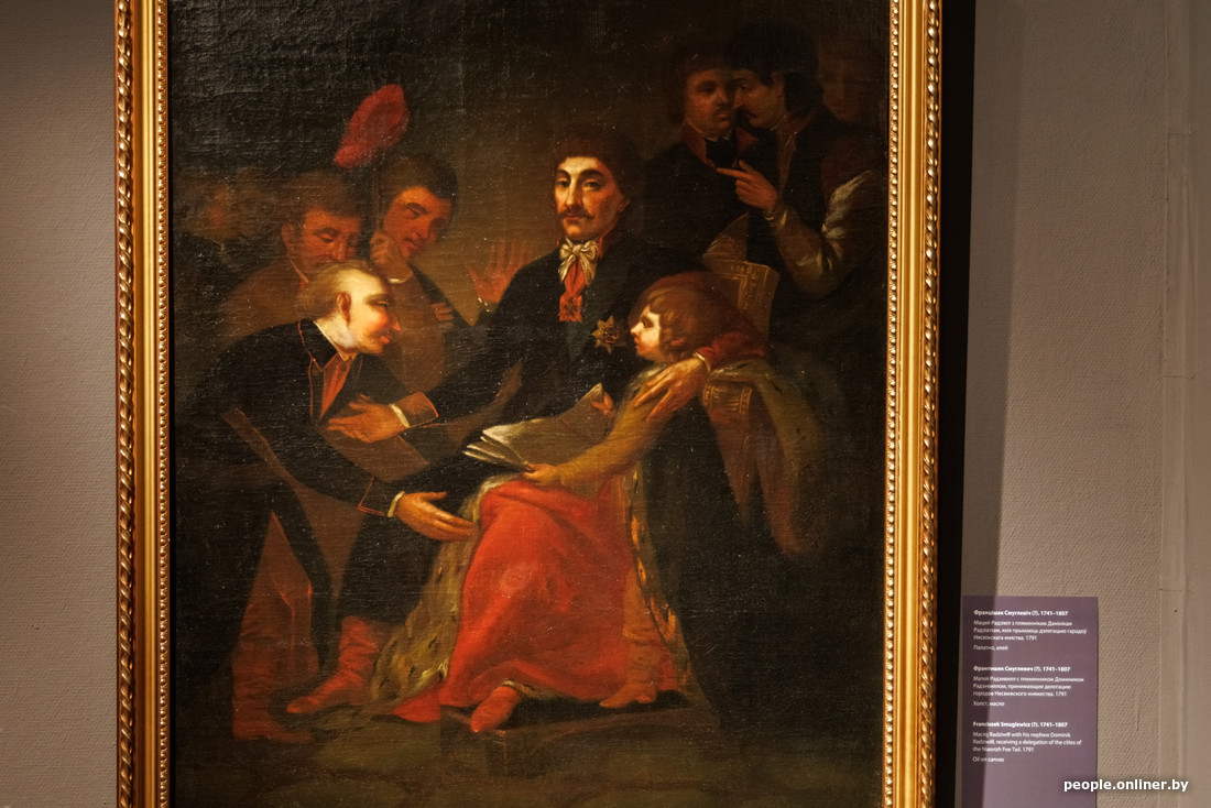 — Галерея формировалась из фондов произведений, находившихся в исторических музеях Беларуси, а также в Эрмитаже, Третьяковской галерее, Русском музее, Государственном музейном фонде... Из РСФСР передавали в основном то, что находилось не в постоянной экспозиции, а в запасниках. В основном это были картины романтиков и передвижников. Так в Минске появились работы Ильи Репина, Василия Сурикова, Ивана Крамского, Валентина Серова и многих других известных художников. Среди них были очень красивые работы. Например, «Маркиза» Александра Головина. А вот картину Репина «Белорус» нам не передали, хотя, думаю, могли бы (это произведение находится в постоянной экспозиции Русского музея. Впервые выставлялось в Беларуси летом 2024 года. — Прим. Onlíner). Из местных в галерее были представлены реалисты Юдель Пэн, Яков Кругер, Евгений Зайцев, Валентин Волков... — рассказывает Надежда Усова. — Кроме того, экспозицию пополняли советские художники из других республик. Некоторые работы писали под заказ. В их числе огромная 5-метровая картина Федора Модорова «Народное собрание в Западной Беларуси. 22—28 октября 1939 года. Белосток», она была создана по заказу первого секретаря ЦК ВКП(б) Беларуси Пантелеймона Пономаренко.