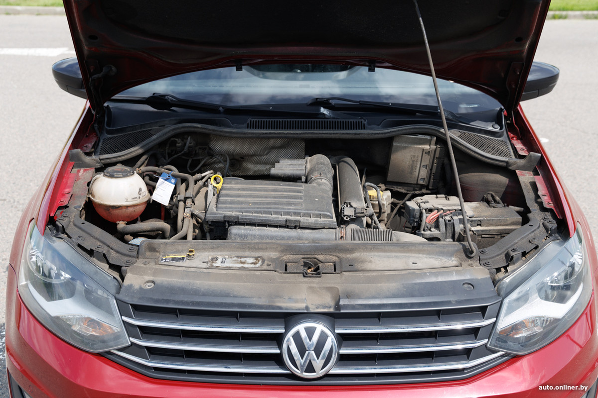 Polo дебютировал с 1,6-литровым двигателем CFNA семейства ЕА111 мощностью 105 л. с. Версия CFNB, дефорсированная до 85 л. с., появилась лишь в 2014 году. А уже в 2015-м автомобиль получил новые моторы семейства ЕА211 с ременным приводом ГРМ: при том же объеме они развивали 90 и 110 л. с. Машины могли комплектоваться 5-ступенчатой механической коробкой или 6-ступенчатым «автоматом» Aisin. Наконец, в 2016 году Polo получил и турбомотор 1.4 TSI мощностью 125 л. с., причем, в отличие от родственной Skoda Rapid, он мог сочетаться не только с 7-ступенчатым «роботом» DSG, но и со 6-ступенчатой МКП.