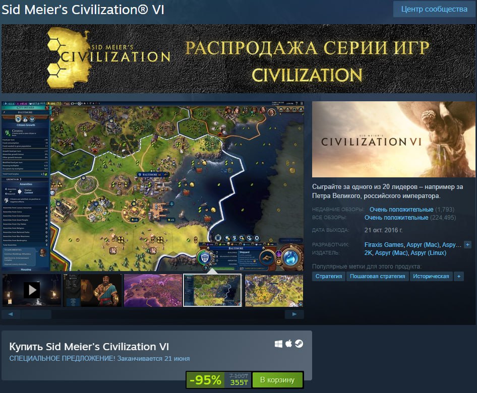 В честь анонса Civilization VII в Steam стартовала распродажа игр