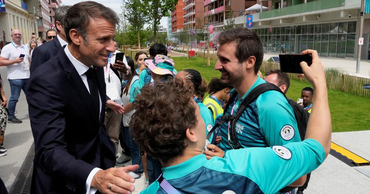 Au four et au moulin. Ce lundi, Emmanuel Macron est passé en mode Jeux olympiques. Visite durant toute la matinée du village des athlètes, installé à Saint-Denis et sur l’île Saint-Denis, accueil de la presse étrangère accréditée sur Paris 2024 à l’Élysée en milieu d’après-midi et enfin ouverture de la 142e session du Comité international olympique (CIO) en fin de journée du côté de la Fondation Louis Vuitton située dans le bois de Boulogne… Le président de la République a vécu une journée marathon, ne lui laissant guère de temps pour une baignade dans la Seine, comme il s’était engagé à le faire avant le début des Jeux. Une promesse qu’il devrait finalement tenir après la grand-messe olympique, tant sa semaine s’annonce chargée…