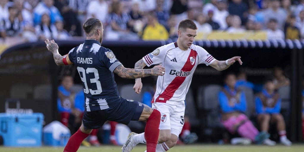 De la mano de un Mastantuono, hoy sí, activo y metido en el partido, el inicio de encuentro pertenece a River. La joven perla recientemente fichada por el Madrid se adorna con una rabona como recurso para un centro que cerca está de ingresar en la portería, algo que evita un atento Andrada. Pero la buena puesta de escena de los argentinos apenas dura cinco minutos, lo que tarda el centro del campo de Monterrey en hacerse con el encuentro y dominarlo a su antojo.
