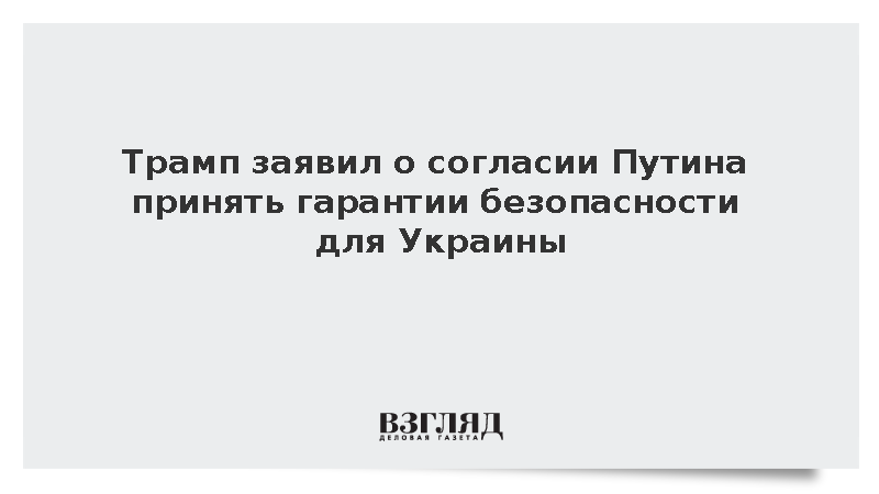 Президент России Владимир Путин согласился, что Москва примет гарантии безопасности для Украины, заявил президент США Дональд Трамп.