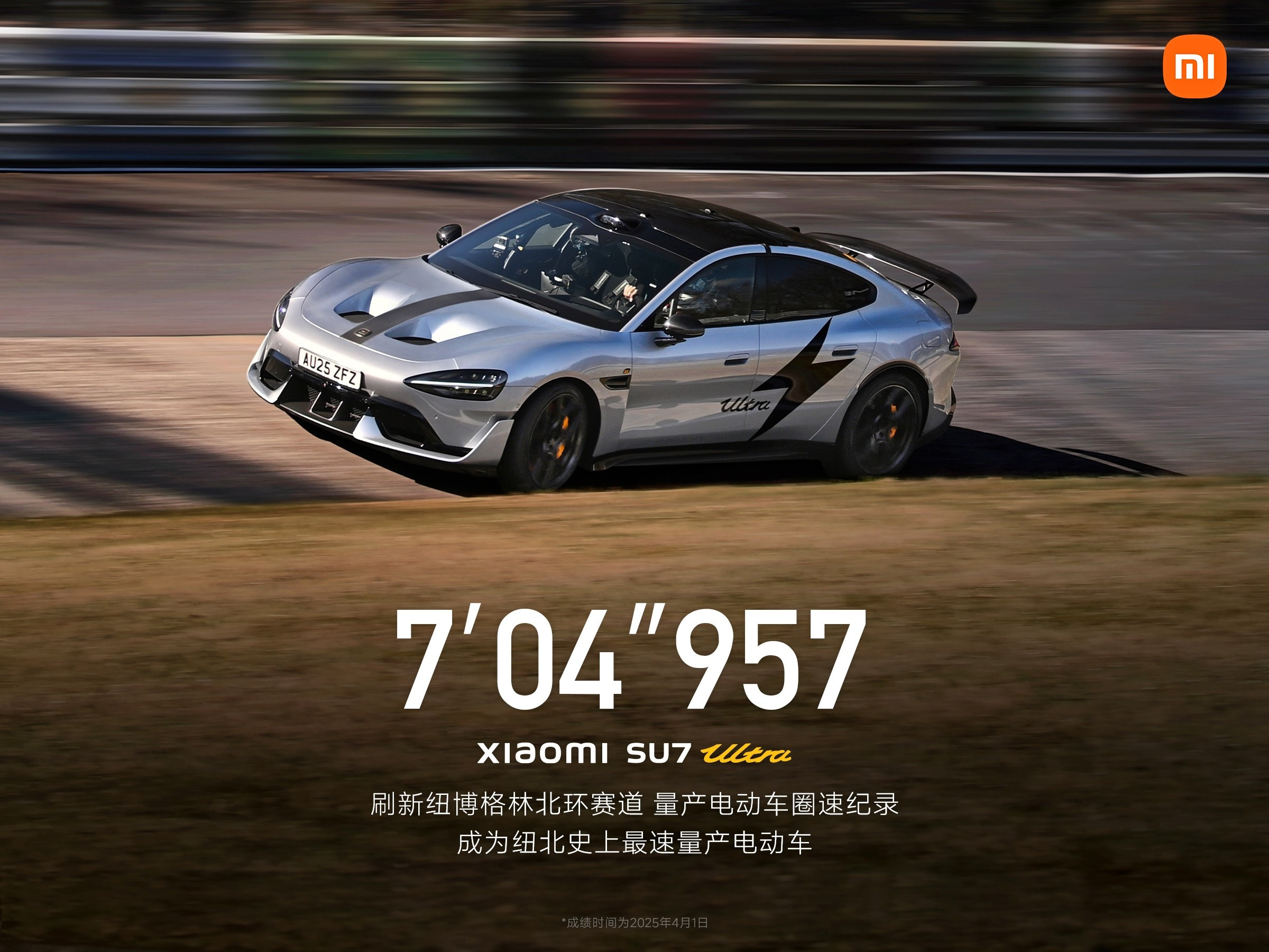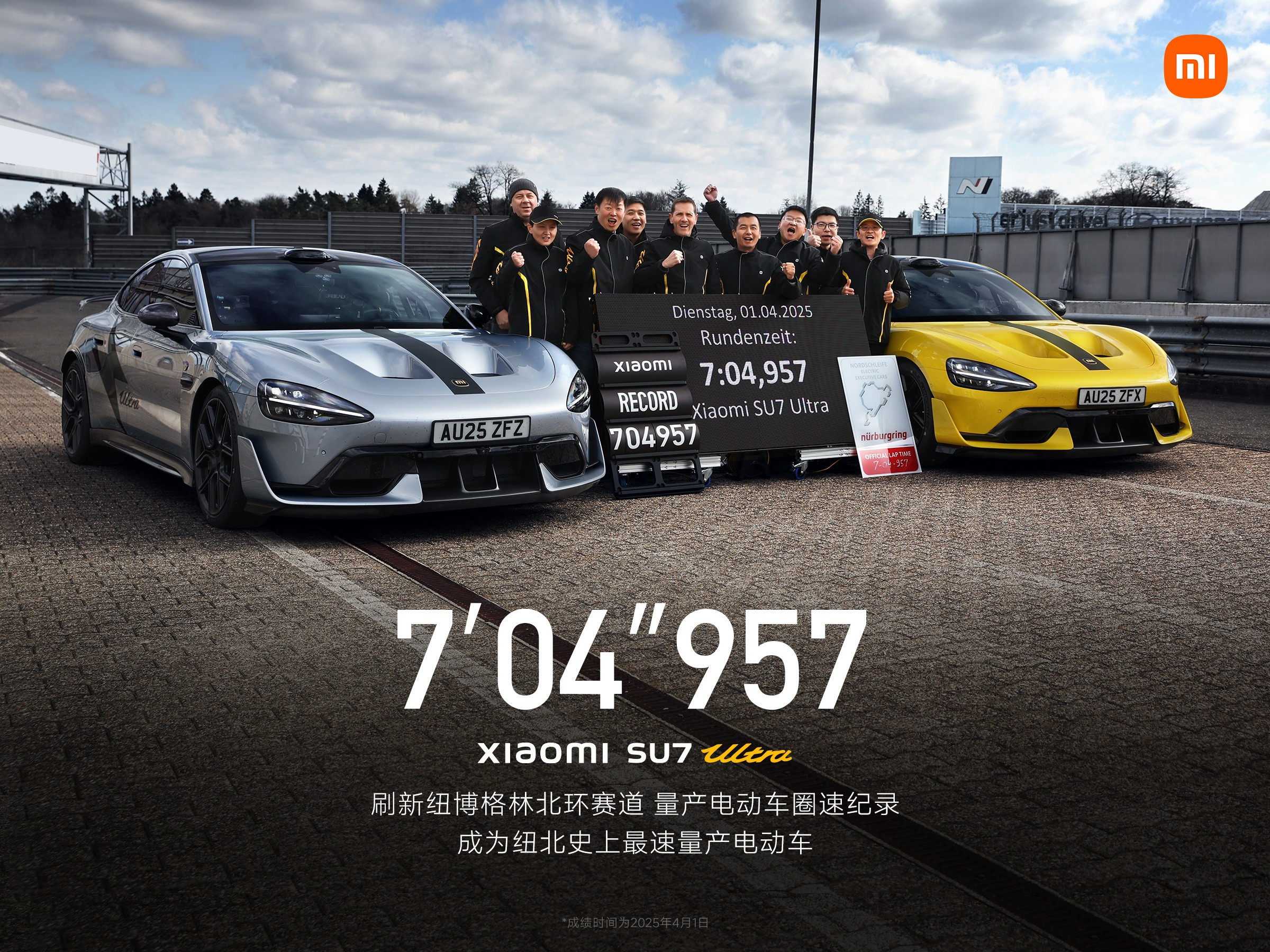 Серийный Xiaomi SU7 Ultra вышел на рынок в феврале этого года, с тех пор он установил несколько рекордов на локальных, китайских трассах, а 1 апреля состоялся эпохальный заезд на Нюрбургринге, о котором однако было официально объявлено только сегодня. С временем круга 7 мин 04,957 с серийный Xiaomi SU7 Ultra превзошёл рекорд Porsche Taycan Turbo GT (7 мин 07,551 с) и занял первое место в классе представительских электромобилей.