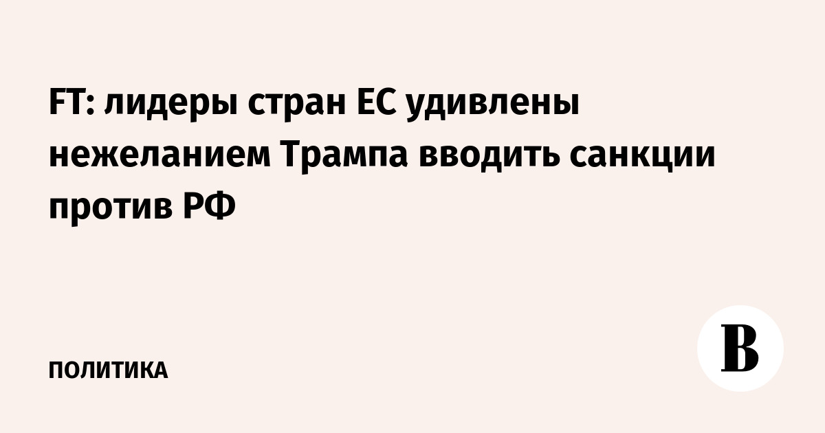 По данным газеты, главы европейских государств поняли, что Трамп «не готов оказать большее давление» на Москву. Их удивило отсутствие поддержки Евросоюза в решении о новых санкциях, которые якобы помогли бы достичь урегулирования конфликта России и Украины быстрее.